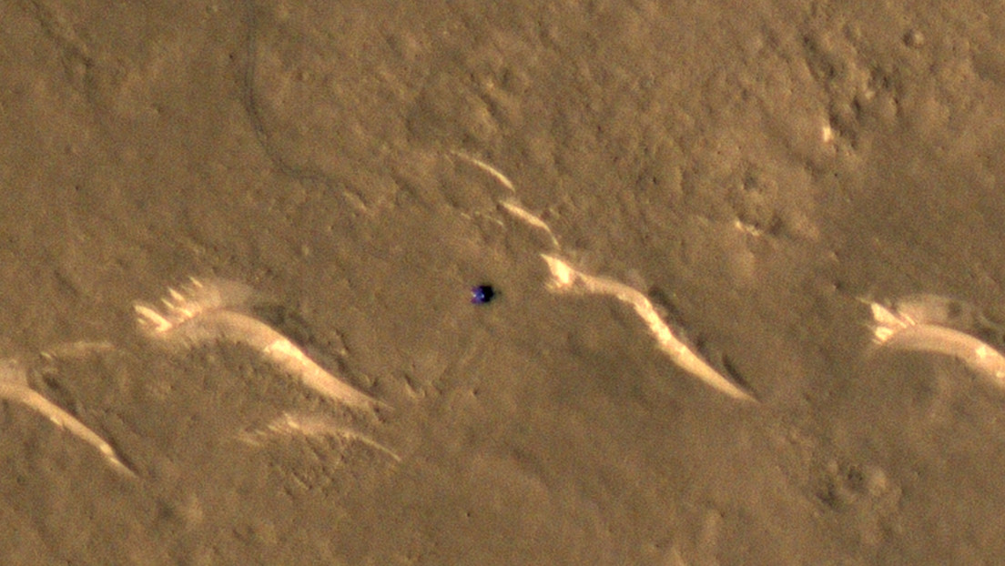 El equipo responsable de dirigir las investigaciones con el dispositivo HiRISE detalló que la imagen fue tomada el pasado 11 de marzo a una altitud de 288 kilómetros y en ella se aprecia los equipos empleados por la misión china durante el aterrizaje del vehículo explorador Zhurong, tales como el módulo de descenso y la carcasa trasera.